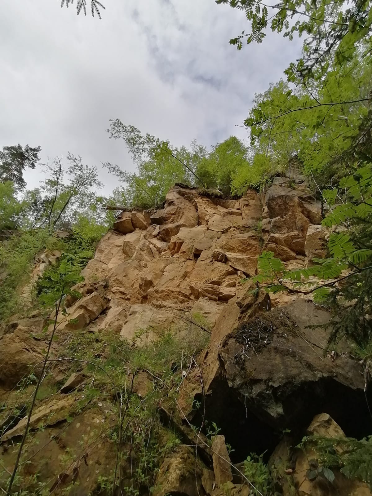 Dieser Steinbruch ist auch auf dem Wanderweg am Fuße der Burg ausgeschildert.